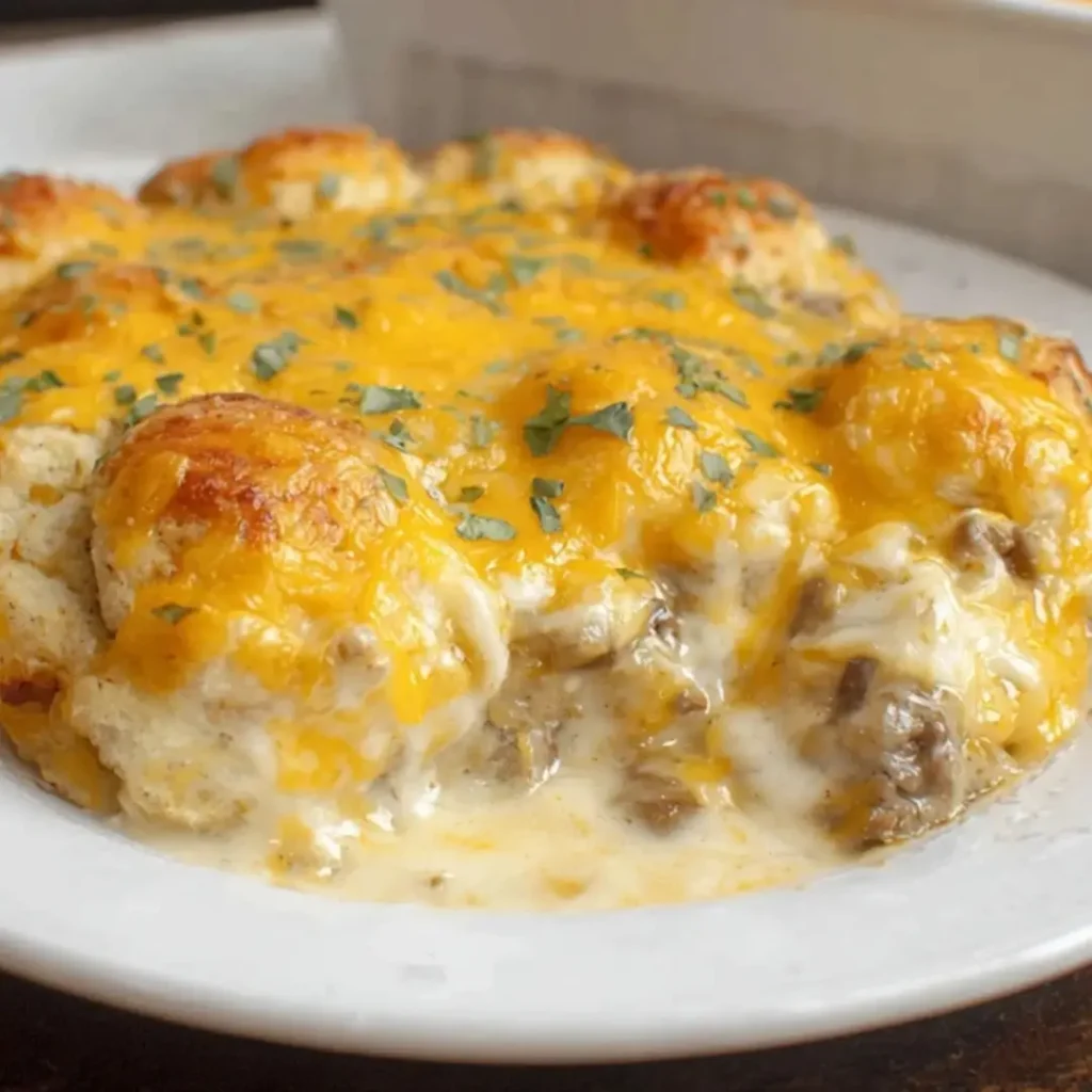 For the flakiest biscuits, don’t overcrowd them in the baking dish. Giving them a little room to expand means they’ll bake up beautifully, with golden edges and soft centers that soak up all that delicious gravy.