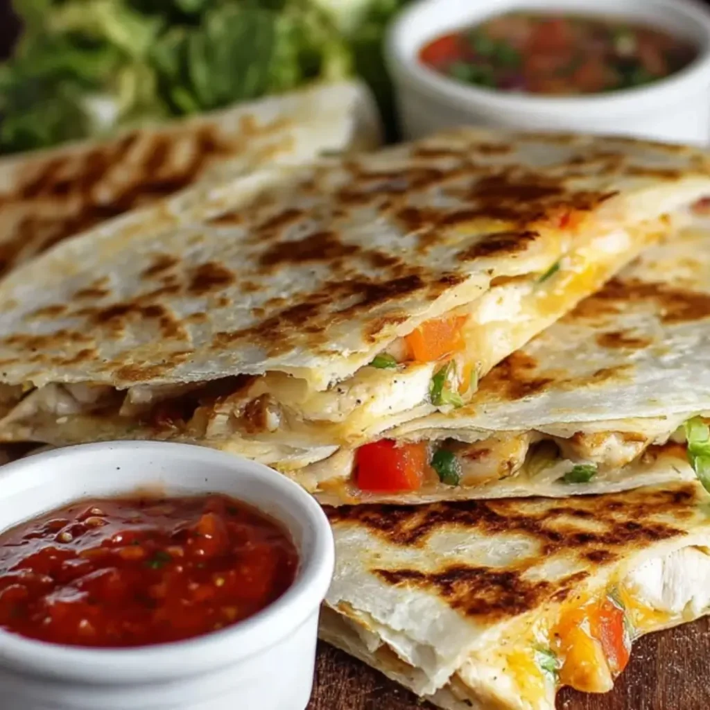 Ensure your chicken mixture isn’t too saucy. Also, cook the quesadillas over medium heat until golden brown, allowing the cheese to melt and the tortilla to crisp up nicely, preventing any sogginess in your chicken quesadilla.