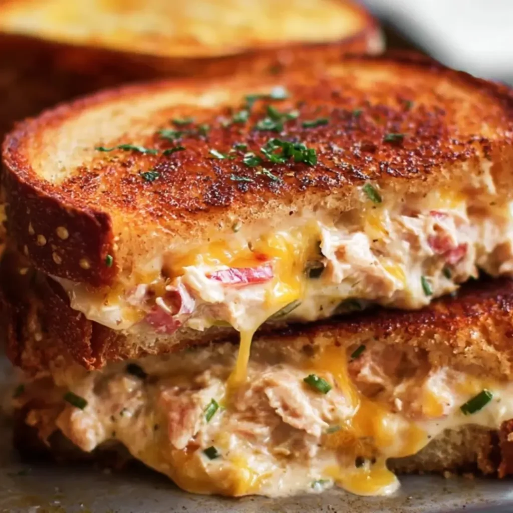 This classic diner-style tuna melt features a creamy, savory tuna salad perfectly sandwiched between two slices of golden-brown, buttered bread with gooey melted cheese. It’s comfort food at its best!
