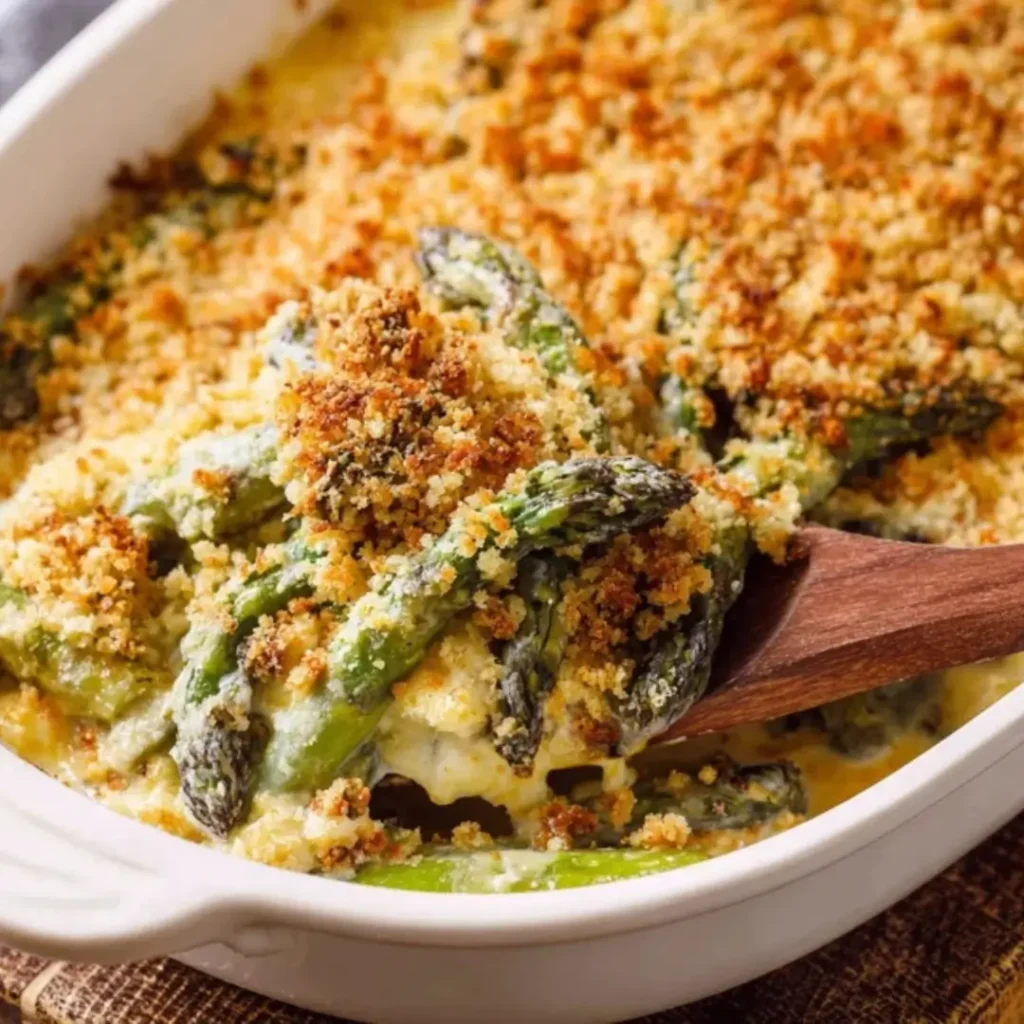 Creamy Asparagus Casserole with a Cheesy Crumb Topping