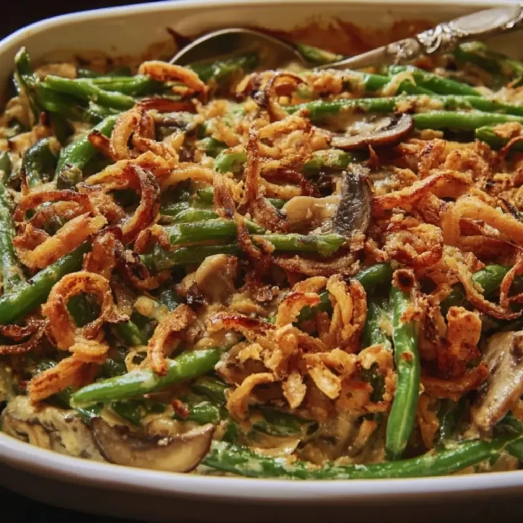 Creamy Green Bean Casserole with a Crispy Onion Topping