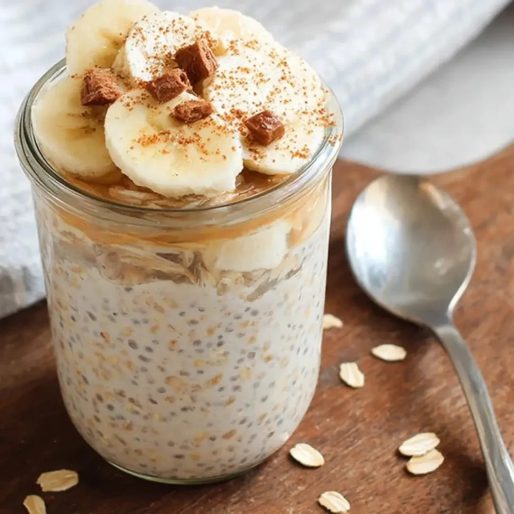 - The next morning, give the oats a quick stir. If desired, add a splash more milk to reach your preferred consistency. Top with fresh banana slices, chopped nuts, and a sprinkle of extra cinnamon before serving.