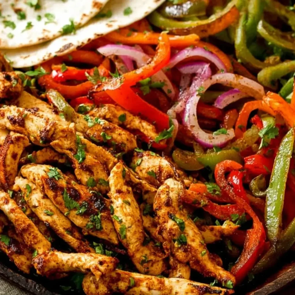 A vibrant and flavorful dish featuring tender strips of marinated chicken, sweet bell peppers, and onions, all sizzled to perfection. This recipe brings the authentic taste of Mexican fajitas to your table with minimal effort and maximum impact.