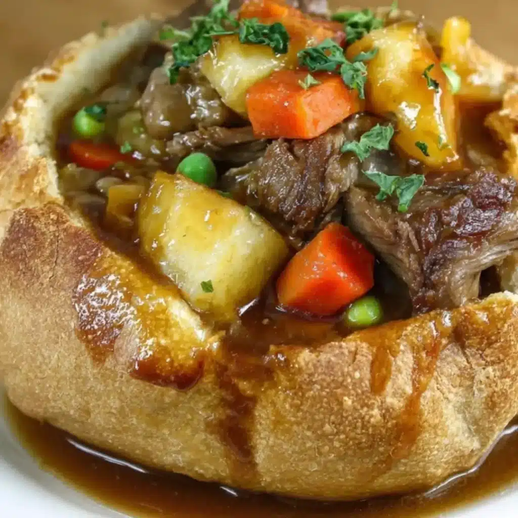 Hearty Classic Beef Stew in Sourdough Bread Bowls