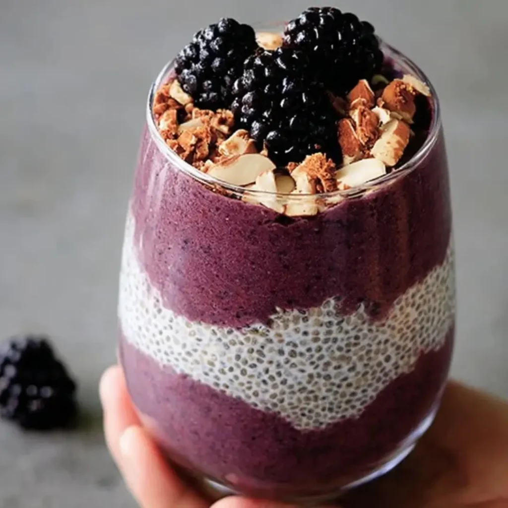 2. Garnish with fresh blackberries, chopped nuts, or shredded coconut if desired. Serve chilled for a refreshing and satisfying meal.