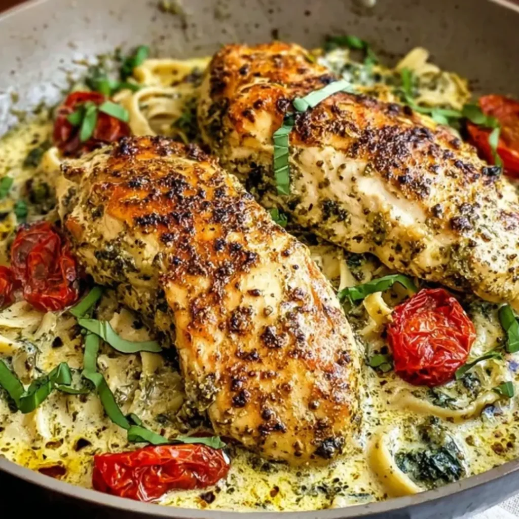There’s something truly magical about a dish that combines comforting flavors with effortless preparation, and this Creamy Pesto Chicken does just that. It’s a dish that feels gourmet yet is incredibly simple to bring to life in your own kitchen, promising a delightful creamy texture and a burst of savory pesto goodness in every bite.