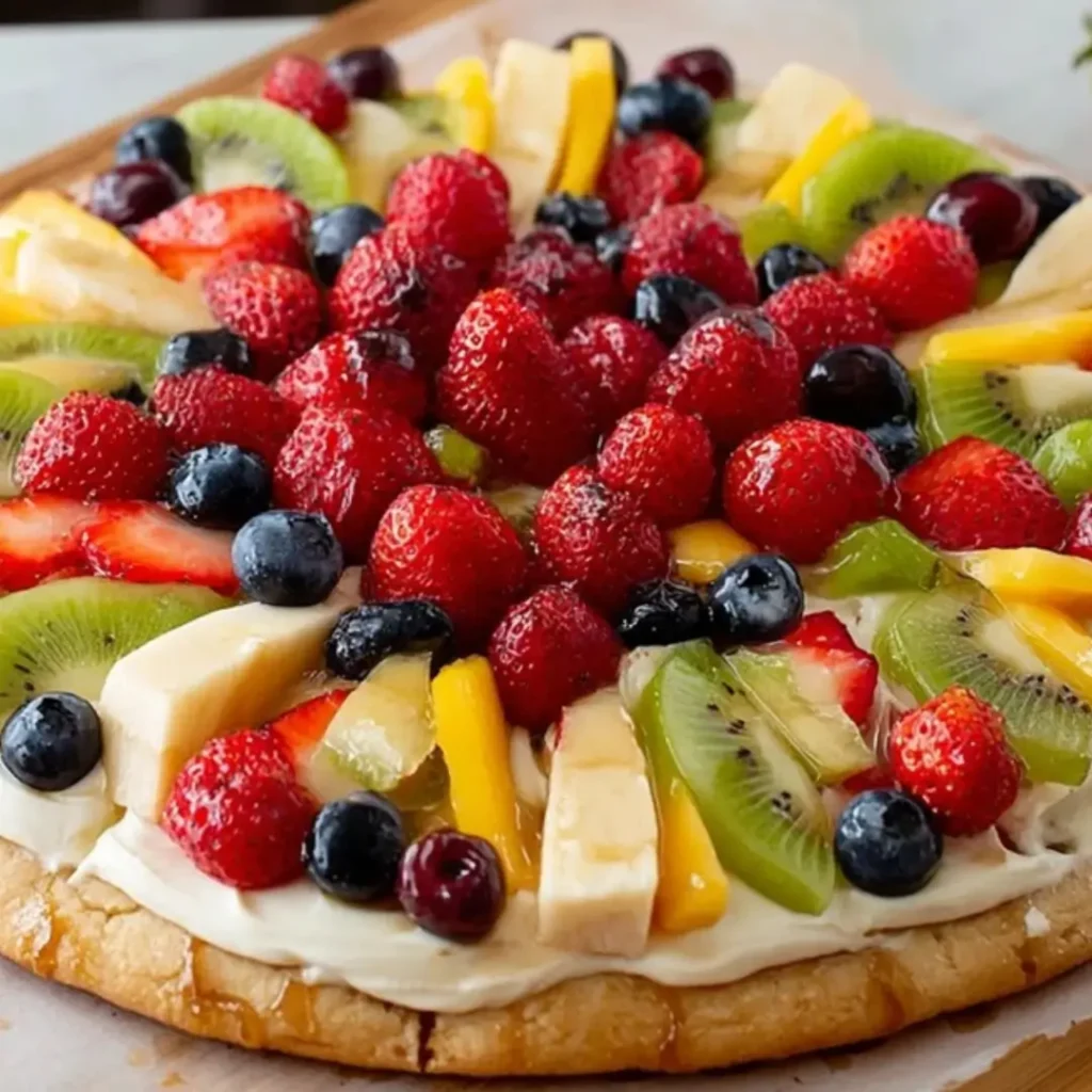 For the Best Fruit Pizza, firm, colorful fruits that don’t brown quickly are ideal. Strawberries, blueberries, kiwi, mandarin oranges, grapes, and raspberries are fantastic choices. Avoid overly watery fruits, as they can make the crust soggy.