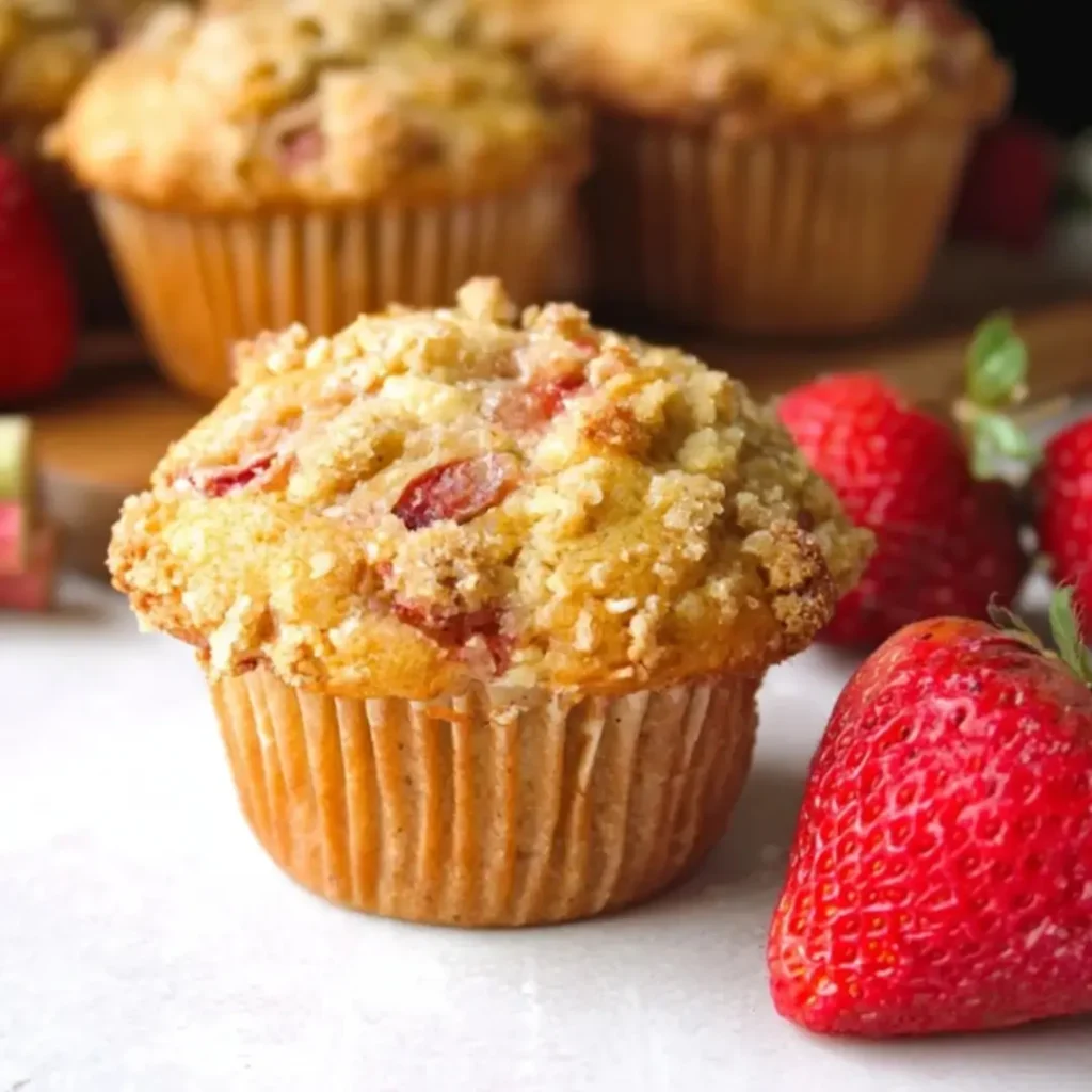 When adding the chopped rhubarb and strawberries, toss them lightly with a tablespoon of flour first. This little dusting prevents the fruit from sinking to the bottom of your muffins, ensuring every bite is bursting with fruity goodness.