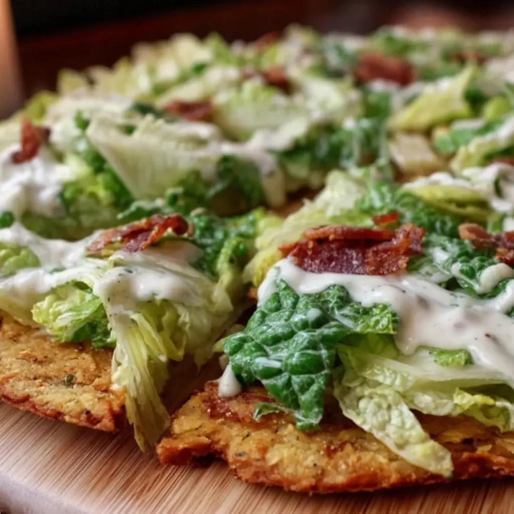 An innovative and healthy twist on pizza, this recipe features a savory, crispy tuna crust topped with a fresh, vibrant Caesar salad. It’s a low-carb, high-protein meal that’s both satisfying and bursting with flavor.